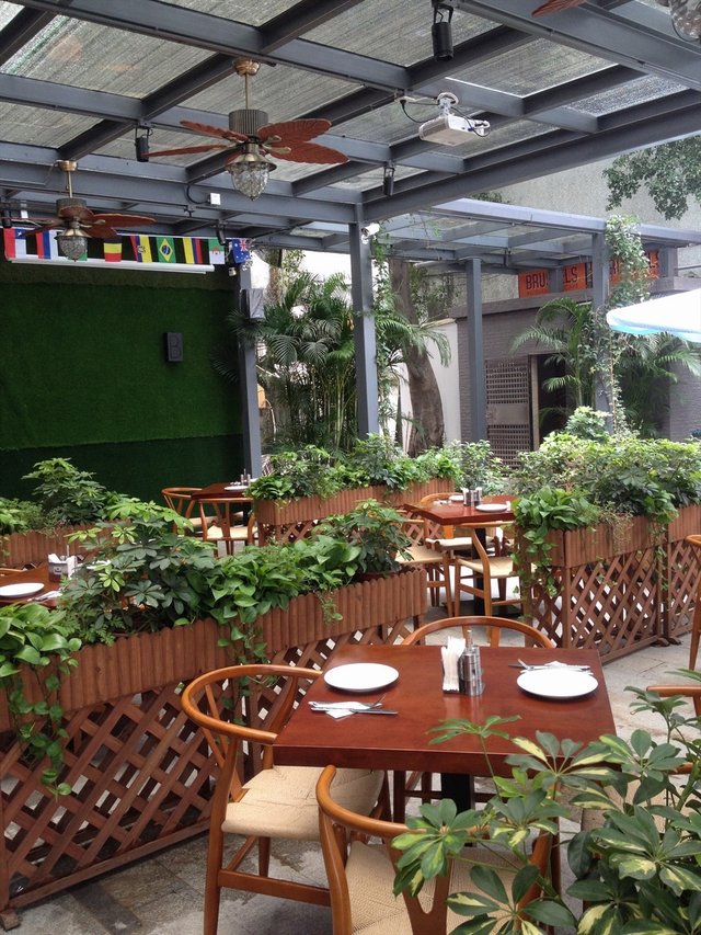 这里是餐厅的后院,如果想坐室外空气好些的人们,不妨可以考虑这里喔。