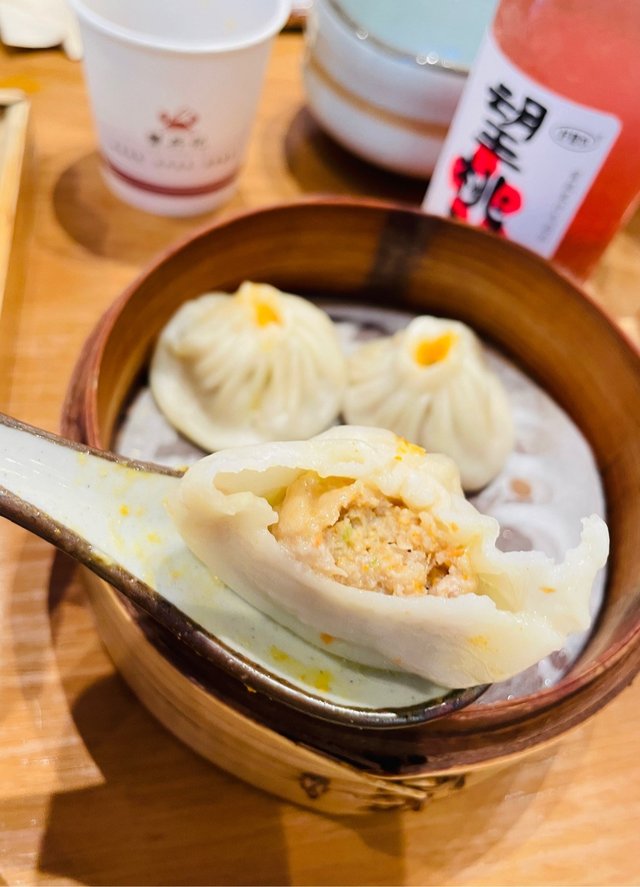 皮薄餡大,肉餡鮮嫩。輕輕一咬蟹黃的香氣撲鼻而來,與肉餡的香氣融為一體,湯汁入口自動順喉而下!