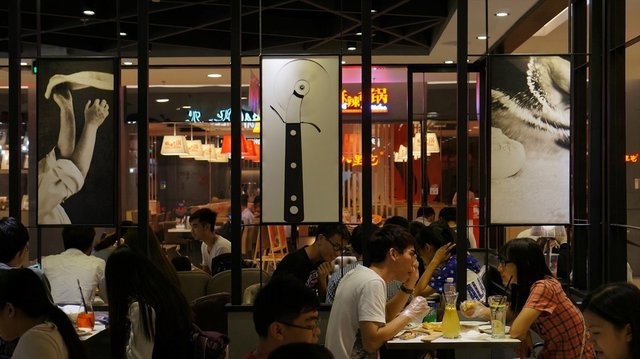 开放式设计,现代感风格,简约装修,感觉很大,其实座位不是很多。