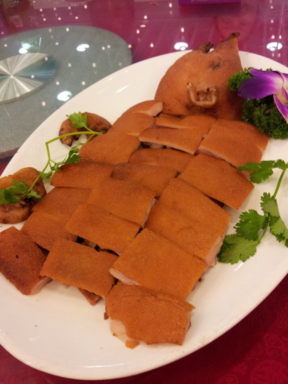 烧猪,卖相不错,看起来挺吸引的,烧猪皮好脆,加上他家配给的白沙糖一齐吃,味道几好。他家还准备了甜酱添,任君选择。