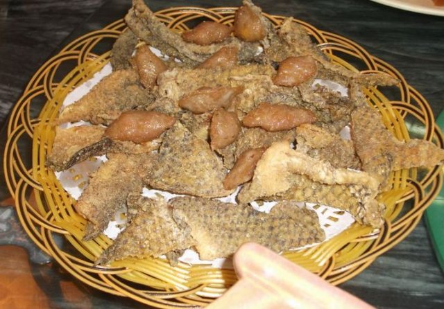 炸鱼皮拼鱼皮角,可以话系最热气既一个菜式,鱼皮脆卜卜,有少少硬,用黎送粥应该唔错;鱼皮角仔外脆内嫩,咸咸地,size啱啱好,一啖一只。
