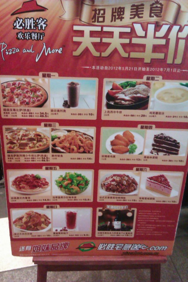 系门口见到大块广告招牌,PizzaHut呢期推出左天天半价既特惠,貌似每年都有呢甘既活动。今年时间稍微早左呢,天天半价优惠从5月21日起到7月1日,各家分店都有,每天两款,日日翻新!优惠既食物包括比萨、牛排、意饭、意面、沙拉、饮料、甜点和小吃等。。。