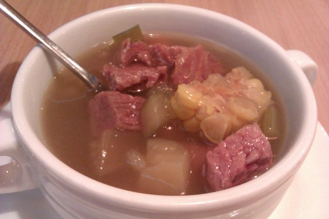 上选精炖牛肉汤¥17,牛肉汤睇得出用料十足,里面系精选牛腱肉粒、鲜嫩玉米、土豆、胡萝卜、西芹,并以月桂叶和鱼露调味,充满欧式美味,牛肉很嫩口,令人回味无穷。