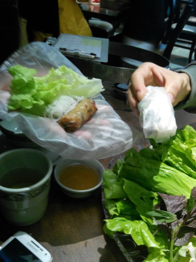 大头虾越式风味 华文炜等级42013-12-0542 浏览 关注 大头虾越式风味这是一家吃越南菜比较出名的饮食店,每次去都很多人,这次是提早去了,所以不用等位。三个同事一起去的,点了个有春卷有虾的拼盘,忘记什么名字啦!要用米纸包起来吃的,挺特别。黑胡椒炒杂锦海鲜,味道还好,很重胡椒味,还点了条酸梅鱼,里面放了香茅,我吃不习惯,不过里面有草菇很爽口,分量还是可以的!以上食记乃用户个人意见 , 并不代表OpenRice之观点。赞好分享大头虾越式风味 大头虾越式风味餐厅 (惠福东路) https://s.openrice.com/KtLT0m05j8800检举 咪咪sun 还没去吃过,想问问人均怎样?2013-12-05 回应 张贴 评分4味道4环境4服务3卫生3抵食