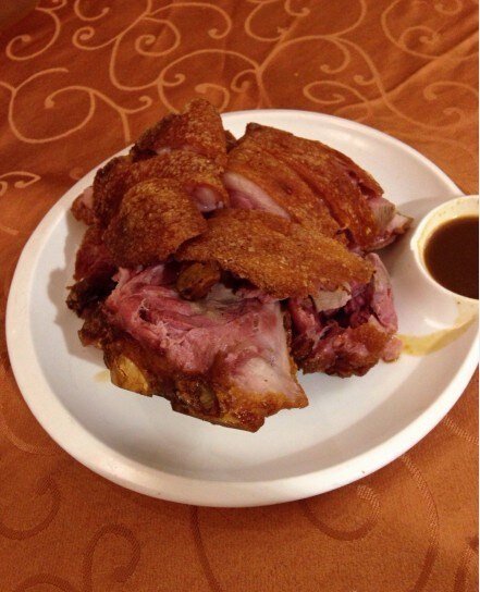 门面很小,不认识的真的会把它忽略掉,楼上装修一般,典型方式老旧大排档的样子,但胜在份量够足味道也好,价格中等不算很贵。招牌脆皮猪手最多人点,份量很大整只都烤得很香,外脆里嫩很入味,但味道还是有点过咸,店家在旁边加一小碟芥茉酱,其实不加也没所谓,加了味道太呛了,白灼牛肉的酱汁也是加了点芥辣的,里面的牛肉好嫩很香,份量也足。
