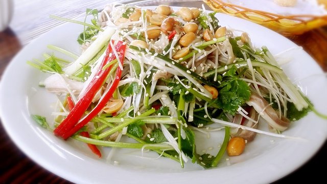凉拌猪肚,见到配菜好多下,不过猪肚分量还可以接受啦,猪肚系腌过有味,味道几好,加埋佢d配菜一起食,口感唔错啊!好多人点哩个!推荐!30元。