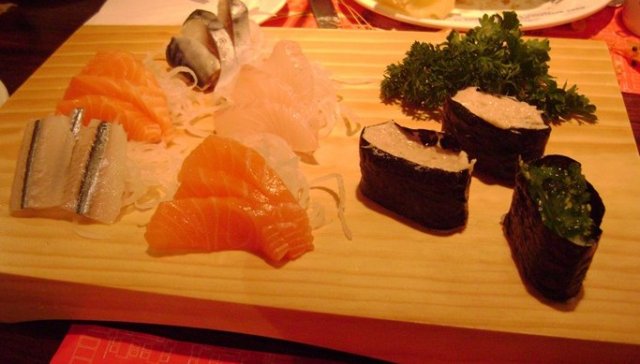 2.三文鱼后切,挺新鲜的!我都专挑贵的,哈哈哈...幸好我胃口小,不然四海一家可亏了!