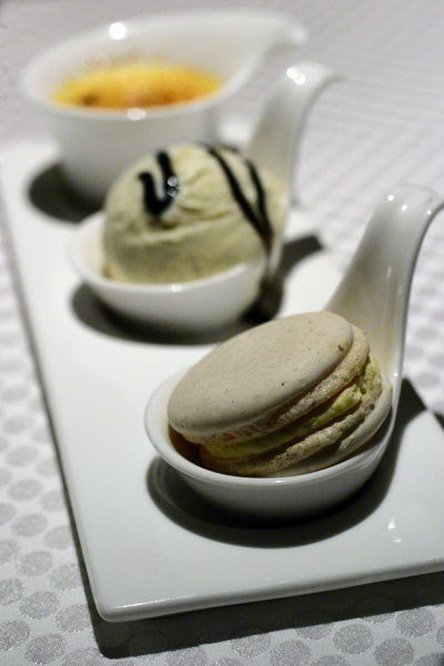 香草焦糖烤布蕾配冰激凌、香草马卡龙(58元):前面所述,最想试的甜品沽清,剩下的两款都较为普通。要说亮点,就数这款甜品拼盘里面的香草焦糖烤布蕾,口感香滑柔软不太甜,犹如缠绵的法式热吻,甜蜜迷人。