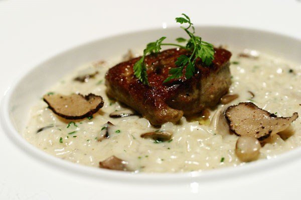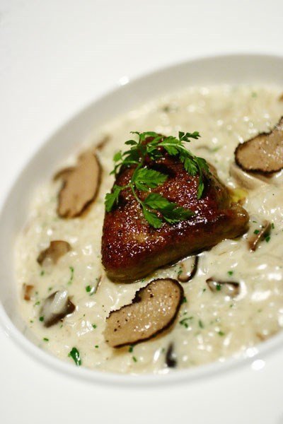 意大利黑松露烩饭配香煎鹅肝,芝士(128元):很正宗,没有为了迁就国人的口味而改良,饭粒硕大口感浓稠,烩饭用广州人的话说就是“有点生粒”,喜欢与否见仁见智,卖相倒是风度翩翩的,香煎的鹅肝整就一绅士的化身,那个俊朗迷人。