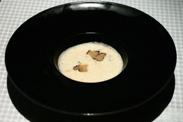 黑松露鲜蘑菇浓汤配牛肝菌,西芹叶(78元):以一黑盘盛着,份量相当的矜贵精致,两片美丽的牛肝菌依偎在散发着原始野性美的黑松露鲜蘑菇浓汤的怀抱中,口感是浓烈狂放豪迈的,当然,如果份量也跟着豪迈就更完美了。推荐!