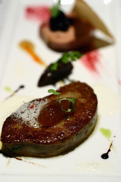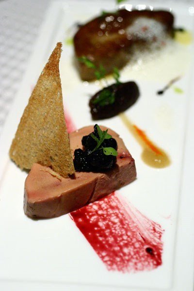 鹅肝双吃(148元):好有创意的一道出品,同时可以试到香煎和烟熏两种做法,传统的香煎入口即化,馥郁丰腴的油脂在齿间缠绕,令人回味; 烟熏的口感虽没有前者的温软热情,却如一特立独行的神秘女子般诱惑着你的神经,令人一试难忘。严重推荐!