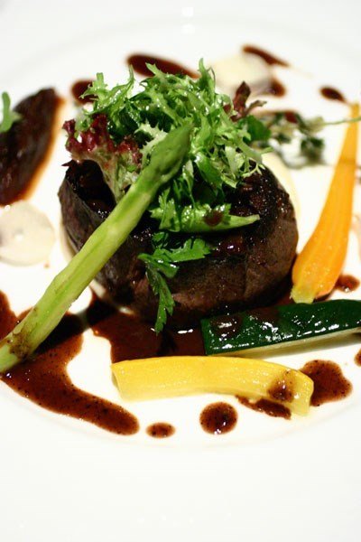 烤澳洲牛柳配百合泥,干葱酱,时蔬,黑椒汁(258元):要了五成熟,不过感觉有点过,小试了一口就被鄙视了,唯一的亮点就是汁酱调得还不错。