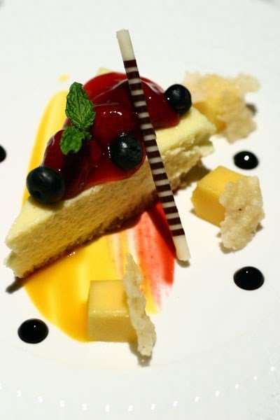 草莓芝士蛋糕(48元):我们下单的时间约是七点左右,餐牌的四款甜品都被点名并注明“叫起”,可惜,在我们用餐完毕(吃货都要相机验毒因而进餐时间为2.5小时)叫起甜品的时侯,被告知提拉米苏和朗姆酒巧克力慕斯已经沽清,小失望!要知道这两款甜品是最被期待的啊。