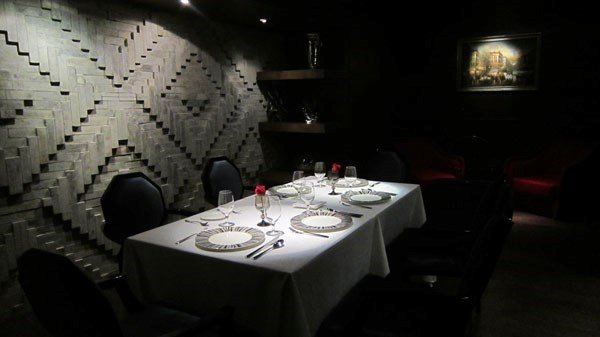 环境:优雅、奢华、暗黑基调、欧洲文艺复兴FEEL,餐厅的灯光没全亮时感觉如同置身于欧洲古堡中,甚至是吸血鬼的大本营内!餐厅只有大小两个包间,设计值得一赞; 餐厅部分区域并未完善好,应作修饰。