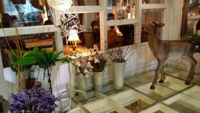 雖然簡單只有一隻鹿還有花和椅的擺設