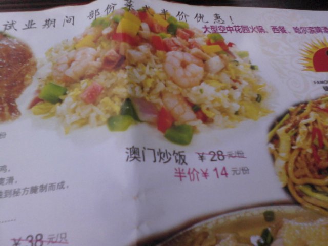 澳门炒饭,原价28元,特价14元;