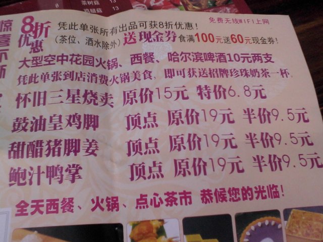 下午4点钟时候,在银太阳楼下有宣传单张,见到有个在新张期间优惠的小菜,凭单打八折等优惠,就上去试一下啦。