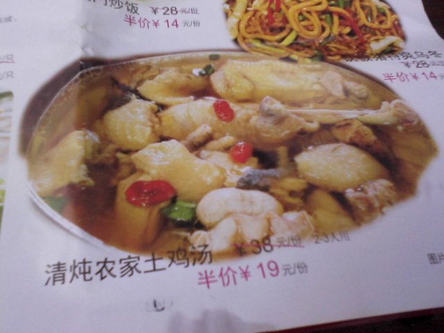 清汤农家土鸡汤,原价38元,特价19元。