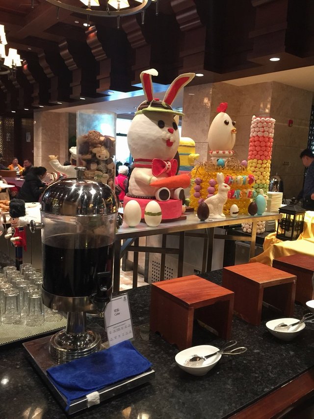 復活節兩天美食團,可惜遇著大塞車,去到花都都下午兩點半,食完午餐唔夠一個鐘,又要趕去酒店食英式下午茶,去到酒店領隊先帶我哋入地下餐廳,餐廳西式風格,不過燈光好暗,唔捨得開燈!