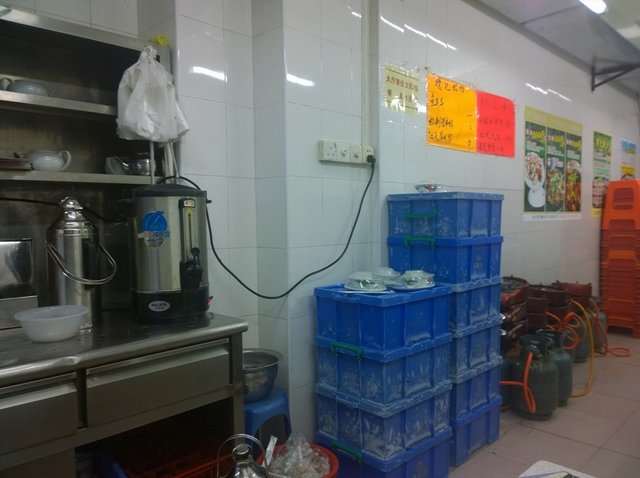 由于店内和店外人行道上已没有空位,老板带我们走进旁边的小巷内的一个小铺面,里面有好几张桌子。