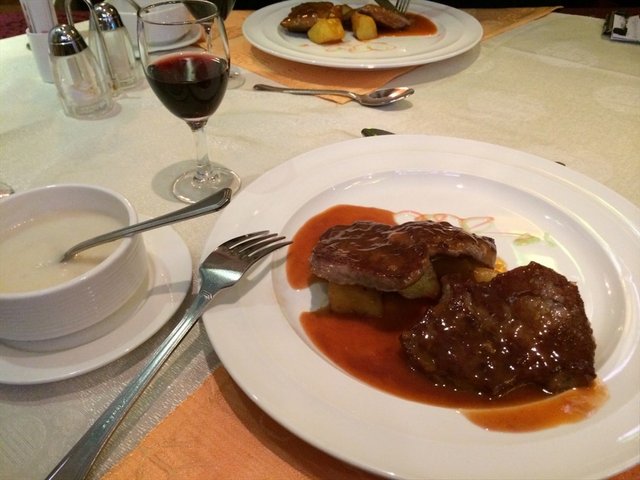 情侣套餐 wanny_ho等级22015-02-0643 浏览 关注 太平馆,据说周总理夫妇曾经在这里用餐过,以西餐为主。和老公点了情侣套餐,每人一份扒,一个7成一个8成,扒的嫩度还可以,主食意粉味道比较淡,套餐里面的两杯红酒比较差,因此都没有喝那个红酒,其余菜式都还不错。值得推荐的是雪糕,很滑很好吃。价格方面一个情侣套餐200多元,由于商家推出会员卡制,每消费100元可以返还40元到卡里,返还的钱可以在下次消费时使用,相当于打了6折。另外柠檬水要收每位1元。服务方面一般般。通常需要等位比较久,但前不久在北京路老店对面开了间新店。以上食记乃用户个人意见 , 并不代表OpenRice之观点。赞好分享情侣套餐 太平馆 (北京路) https://s.openrice.com/KtLT0m0Yuy700检举 张贴 评分4味道3环境3服务3卫生3抵食用餐途径堂食人均消费¥120