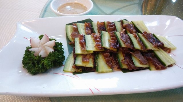 推荐烤牛肉青瓜 小吴佳佳等级42015-01-1437 浏览 关注 金华安算得上是广州老派潮州菜馆了,员村的这一家分店装修有点旧了,走的是平民路线,现在有团购就更加便宜了。 那天中午部门聚餐,刚好遇到有人摆酒,现在挂满了kitty夫妇,成了一片粉红色的海洋。(画外音,觉得这对夫妇很有爱,用自己喜欢的卡通人物做布置,虽然不豪华,但是比起千篇一律没有个性的婚庆公司布置的好多了,走心啊!) 印象最深刻的是这个烤牛肉青瓜,牛肉烤得很香很嫩,散发着浓郁的香味,搭配清新的青瓜一起吃,两极中和,太好吃了!1酱油鸡很一般,鸡不嫩,酱油不香,卖相不好看,不推荐!11以上食记乃用户个人意见 , 并不代表OpenRice之观点。赞好分享推荐烤牛肉青瓜 金华安大酒楼 (东方国际商业广场) https://s.openrice.com/KtLT0m0YMqE00检举 张贴 评分3味道2环境3服务3卫生4抵食用餐途径堂食