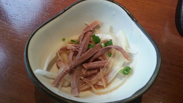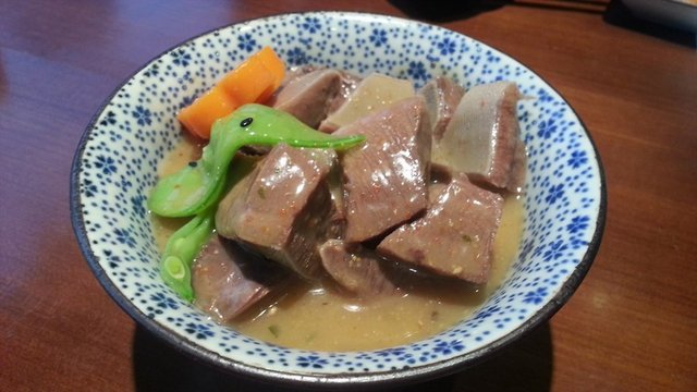 牛舌味噌煮:这道菜使用牛舌头弄的,牛舌头的分量还挺多的,切的厚厚的一块,基本可以一口一个,咬下去酱汁肉汁会在口中四溅,牛舌吃起来有点像吃猪横利相类似。不错!值得推荐!