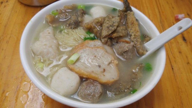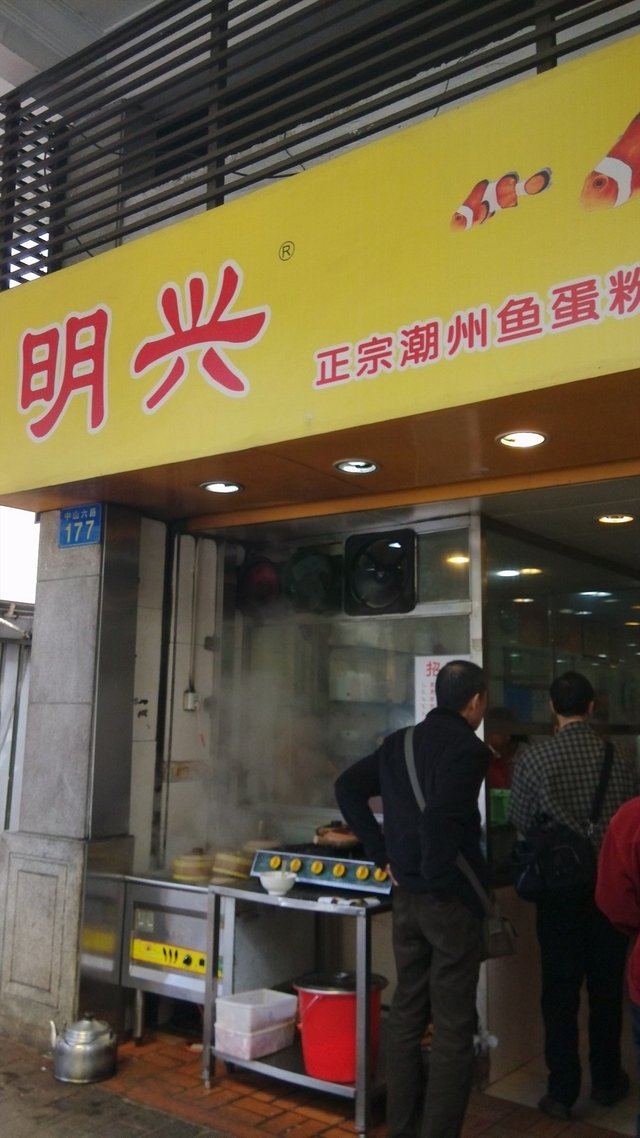 明兴鱼蛋粉店已经开了很久了,在中山六路有2间店。一直都无去试过,这个周末在西门口附近办事中午选择了来这里一尝味道。来到的时候都已经是下午的1点半了,店铺依然门庭若市,里面外面都坐满客人,原本想走去另外一间分店的,但又怕同样系咁多人,所以就唯有等位,等左一阵好快就有位了,不过依然系要拼台,可见尼度真系好旺,同朋友都分别叫了一碗大和一碗细的招牌五彩鱼蛋面,里面配料充足,有酥脆的鱼皮,小巧弹牙的鱼蛋,牛丸,还有鱼腐。鱼皮要趁未完全吸收汤汁的时候吃系最好的,香脆可口,汤底都很浓郁,原本其实应该试粉的,但由于胃唔系咁好,所以选择了面,味道都不错。