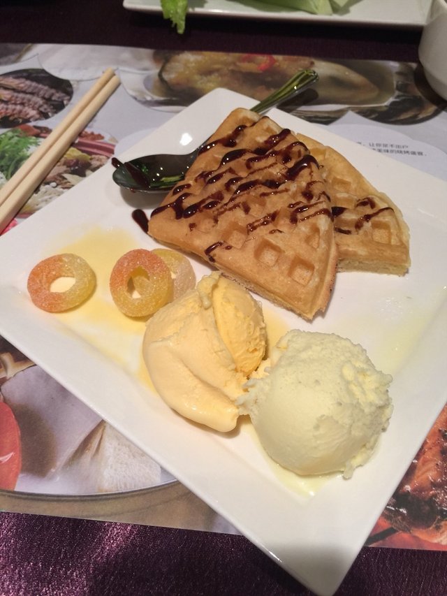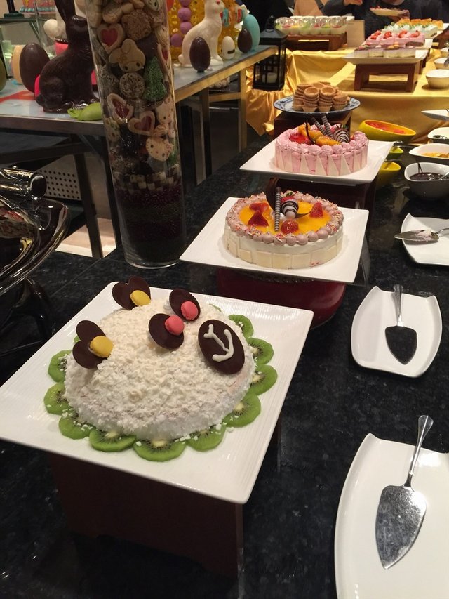 甜品:切餅款式好多,賣相靚,味道唔錯,有師傅即做窩夫,熱辣辣配上雪榚加糖漿,好味!雖然雪榚唔係靚,只係普通,牛奶味唔夠!有款小樽紅莓奶凍大家都話好味!