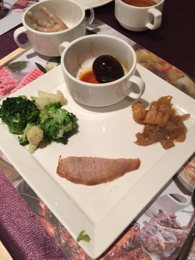 熱盤:自己對熱盤一向一般,只係食咗豬頸肉,皮燒得唔夠香,竟然有薑醋蛋,仲比我搵到隻超級鐵蛋!硬硬地有咬口,正!醃雞腳比較硬!蔬菜正常!
