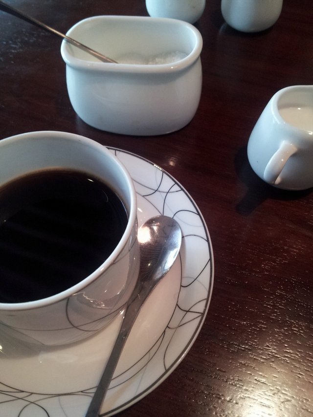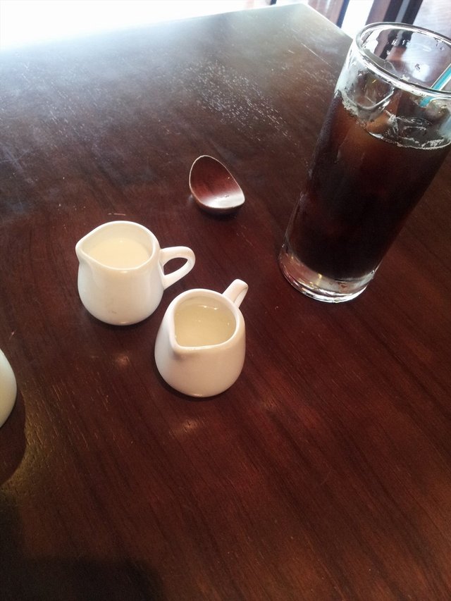 午市套餐附送餐后甜品,果盘、咖啡、冰淇淋三选一,不过冰淇淋经常是断供的。咖啡分为冰咖啡和热咖啡两种,配备的咖啡伴侣也因冷热分为糖浆和糖粉两种而有所不同,这个也是很贴心的一些细节上的处理。