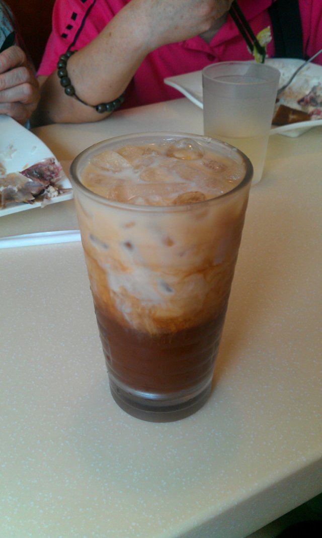 中午的套餐,可以送一杯热饮或者炖汤,冻饮就要加2元了,于是我们分别要了一个炖汤和一杯冻的港式奶茶。