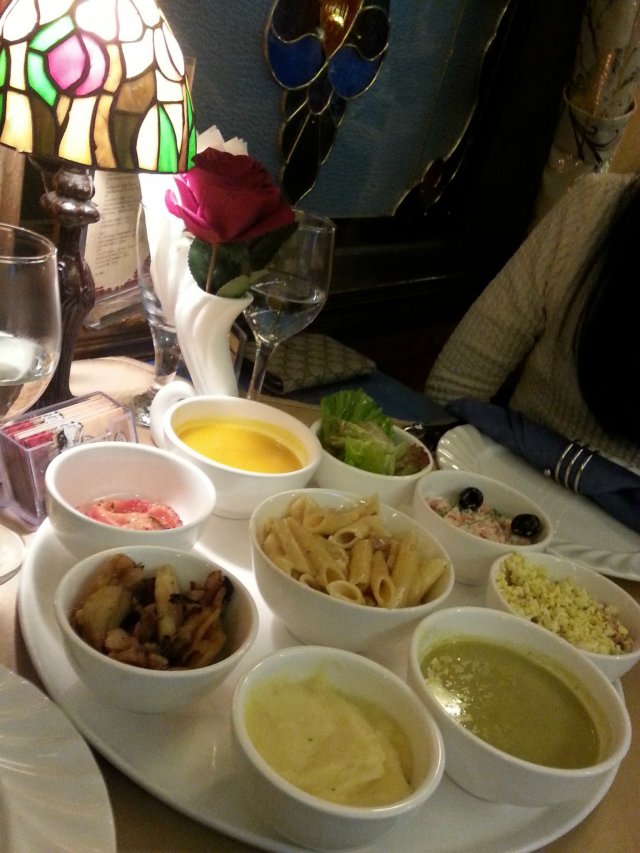 早就想来这家 火车头法国西餐厅了,但是感觉的这里好像蛮贵的样子,一直都没有来~~难得之前看到这里有团购,就特地统统是来这里试一下。这里的环境真的和我想象中的一样好,我们是在火车车厢里面用餐的。我们是团购199的双人餐,分量是足够的~~看起来虽然每一样都是小小一碟,但是品种多,所以完全是能吃饱的。但是味道来讲,我觉得很一般,没有大道预想中的样子。但是甜品还是很不错的~~特别是巧克力,入口即化,很不错。另外可能是团购的原因,所以都是批量制作,所以水平差了一点。我看其它正价的食物,其实还是很不错的,所以,如果再来,应该不会再团购了,贵一点,但是质量可能会好很多~~