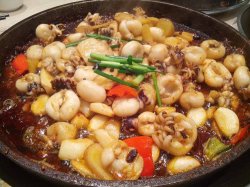 这里的铁板菜中,估计这盘铁板墨鱼仔是最受热捧的,几乎每一桌都有。怎么说呢,可能墨鱼仔本来就不是周围都能吃到,而以这种方式烹调的墨鱼仔,能完全带出食材本身的鲜味,酱汁的搭配能达到最好的效果,一盘吃下来往往都意犹未尽啊。