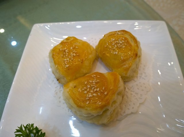 炭烧秘制叉烧酥 8元 和其他餐厅的略有不同,是椭圆形的,烘烤成黄色,撒上白芝麻,吃起来很香、叉烧味道很浓。