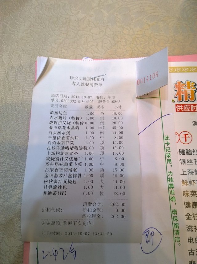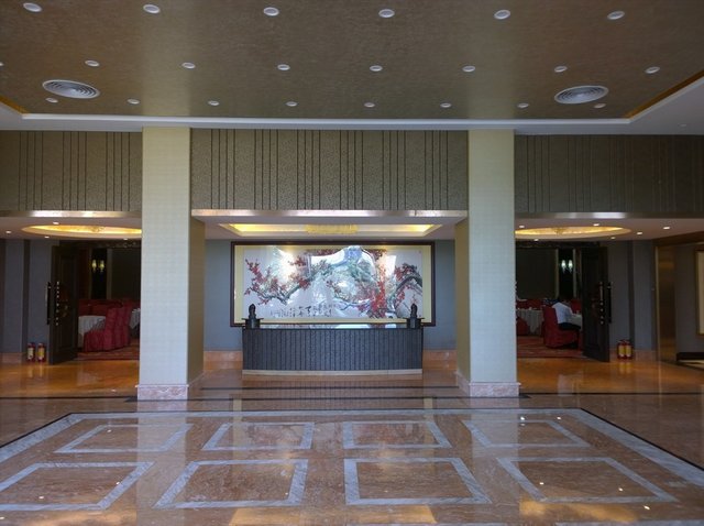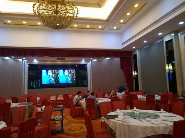 进入宴会大厅,给我的感觉是非常大,水晶大吊灯,显得整个大厅金碧辉煌。大厅内基本是大台,台与台之间间隔较大,顾客坐的很舒服。虽然已是中午十二点,不过顾客并不多,加上我们也就三围台。
