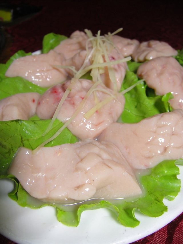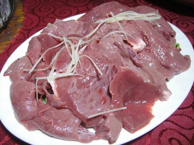 鲜羊腰:35元每份,在汤中略为涮一会就可以吃了,薄薄的一片,味道不算浓,口感爽嫩。