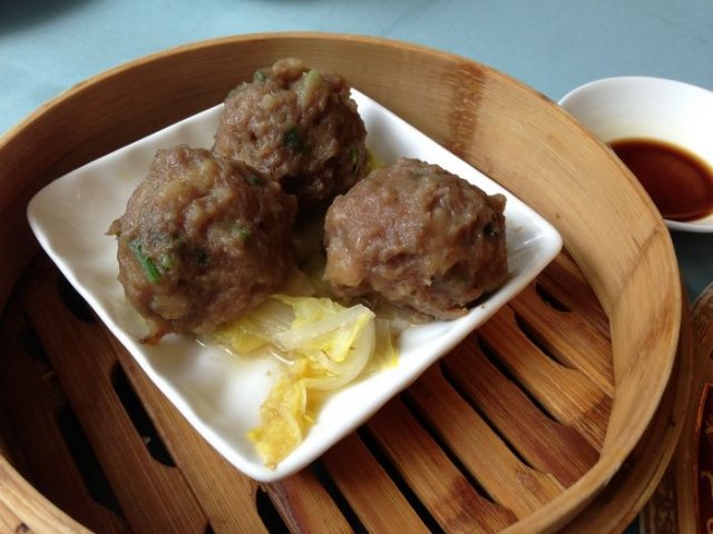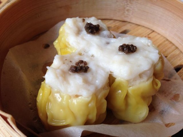 松露燒買,黑色一點點那個就是,味道一般,外面黃色的雲吞皮已經塌了,軟林林,口感比較立,似是回爐翻叮