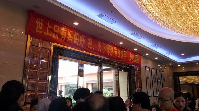 母亲节那天带着家里过来这边吃饭,在增南路口就已经排起长长的车龙,里面的停车场足够应对自驾一族的需求,去到大堂里面见到人山人海,所以果断去拿筹码,看到大厅坐的满满的,而且还陆陆续续有顾客过来拿筹等位,然后就找个位置坐下,环顾四周看到不少今天都是带着家中的母亲来吃饭喝茶,,大堂中间还挂着一幅庆祝母亲节的横幅。途中也有等不急的顾客走人,等了大概30mins,终于有位置啦。服务员收拾桌布还挺利落的。上菜速度还挺快。