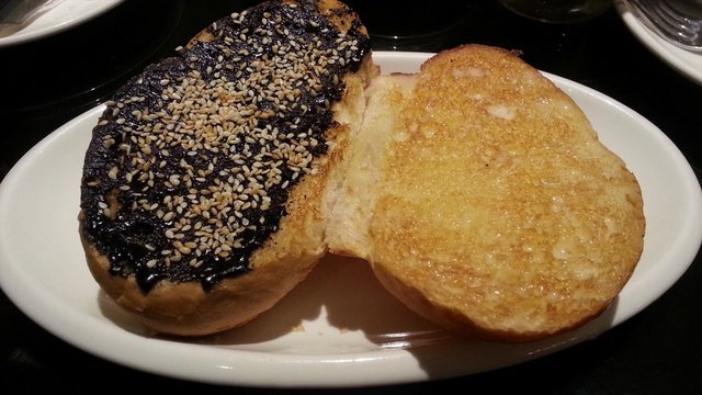黑白朱(15元):其实就是一个小面包中间切开之后,一边涂上炼奶,一边涂上黑色酱汁,上面撒上芝麻,面包吃起来比较干身,有点点甜甜的感觉。