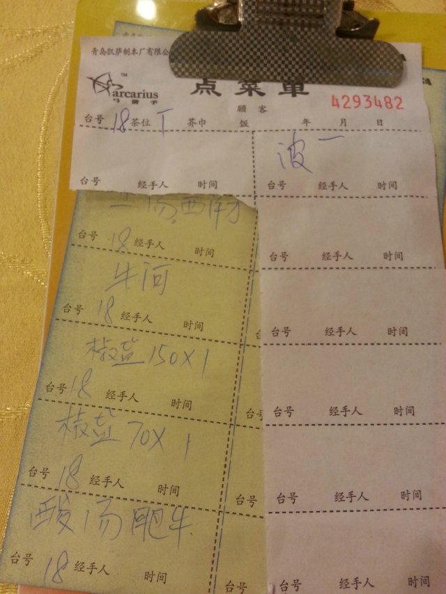 刚坐下就马上点餐了~~听说这里的濑尿虾都是限量供应的~马上就看到一个白板上面写着濑尿虾的余额~~而且这里的濑尿虾是按照重量大小的不同来区分价格的~而且每天价位不一样,我们去的这天价格在70~150元一只!!当然濑尿虾是很大的。我地选了一只最小的70元同一只最大的150元~~呵呵~~同样系椒盐的做法哦