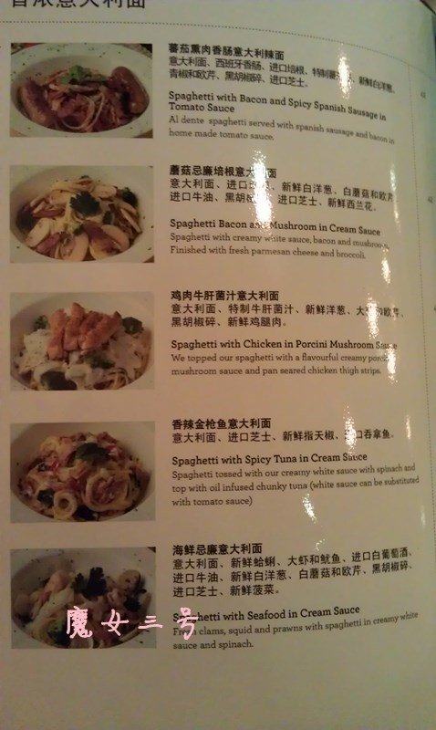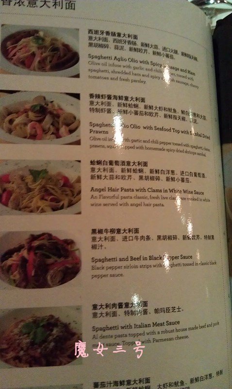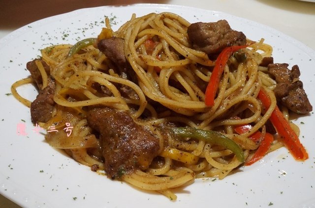 黑椒牛柳意面,这个肉量刚好,适合我这喜欢吃肉的同学。牛柳的腌制的味道和烹调的时间刚好,能保持它的鲜嫩度。黑椒有一点辣,不过就比较能提味,这款意粉吃起来有点辣,对于不太能吃辣的我还是只吃几块牛柳就算了。