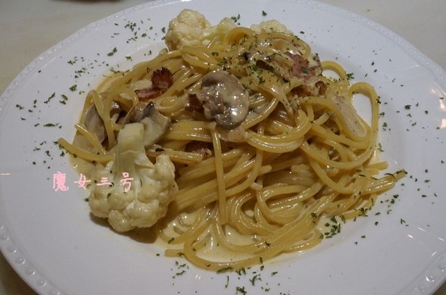 蘑菇忌廉培根意面,比较可惜的是意面的酱汁较少,不过幸好都是吸收到意面里,因此味道刚好,如果培根再多一点点就好了...