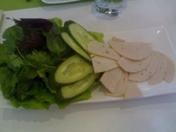 三式扎肉 这个菜来源至法国式香肠,越南曾经是法国的殖民地。是用猪肉、薯粉、鱼露制成,切成片,有点像午餐肉,再用生菜、香叶、青瓜包着,蘸着鱼露吃,非常清谈。