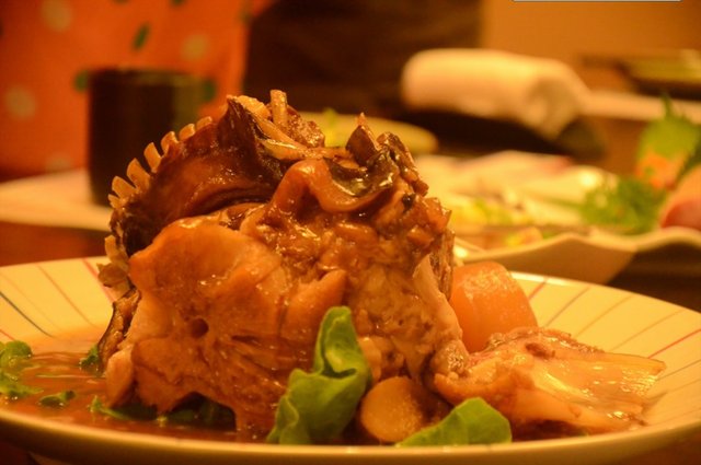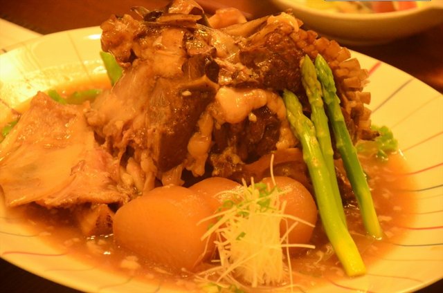 分量很大,看起来很壮观的一道菜。听说吃了对皮肤很好, 味道一般。