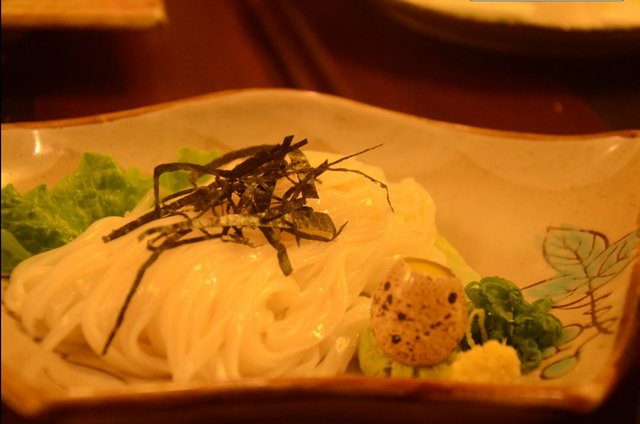 分量不算大。将生的 鹌鹑蛋,姜蓉,葱花倒入附送的酱汁中,搅拌均匀。再用乌冬面蘸一些酱汁来吃,吃法特别,味道也不错。
