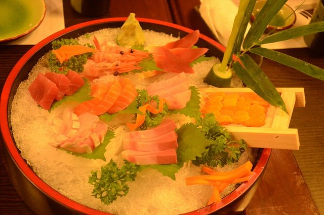 让小伙伴们都很激动的刺身拼盘。但是我却不吃生的东西。鼓起勇气试了试海胆,个人感觉味道一般。但是其他人都很喜欢吃。只能够说每个人的口味都不一样吧!
