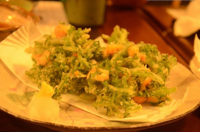 虽然是炸过的东西,但是吃起来却不会很油腻,而且搭配玄米茶,挺不错的。如果不蘸天妇罗汁的话就比较淡,没有什么味道。