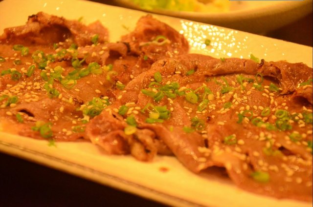 牛肉切成超级薄的薄片,再撒上白芝麻和香葱。口感不错,味道不错。