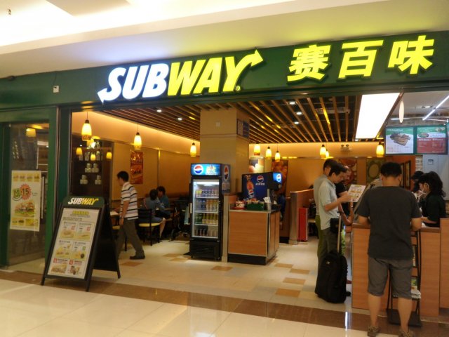 虽然食肆多了,但到了午餐高峰期,这里仍然是一位难求啊!尤其是在节假日。今天刚好是周末,和小朋友到附近的家居卖场逛完后打算到这边吃午饭,却遇到一位难求的窘况:(在心灰意冷且饥饿之际,在吉之岛隔壁居然让我们看到“希望”——人丁稀少的subway!